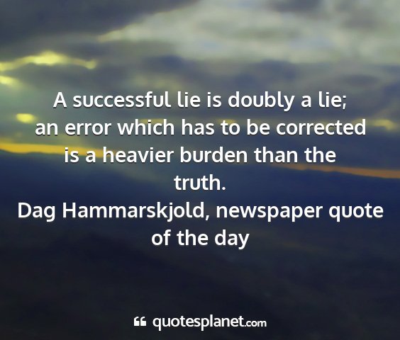 A successful lie is doubly a lie; an error which has to be corrected is a heavier burden than the truth.Dag Hammarskjold, newspaper quote of the day