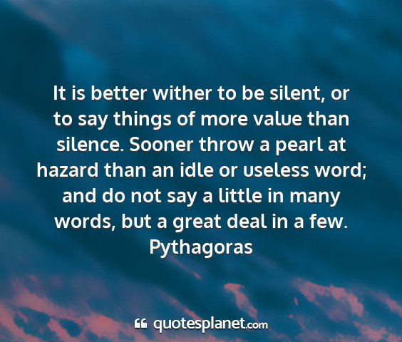 It is better wither to be silent, or to say things of more value than silence. Sooner throw a pearl at hazard than an idle or useless word; and do not say a little in many words, but a great deal in a few.
