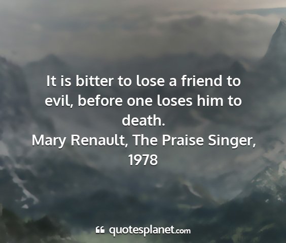 It is bitter to lose a friend to evil, before one loses him to death.Mary Renault, The Praise Singer, 1978