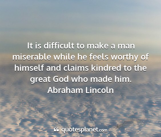 It is difficult to make a man miserable while he feels worthy of himself and claims kindred to the great God who made him.Abraham Lincoln
