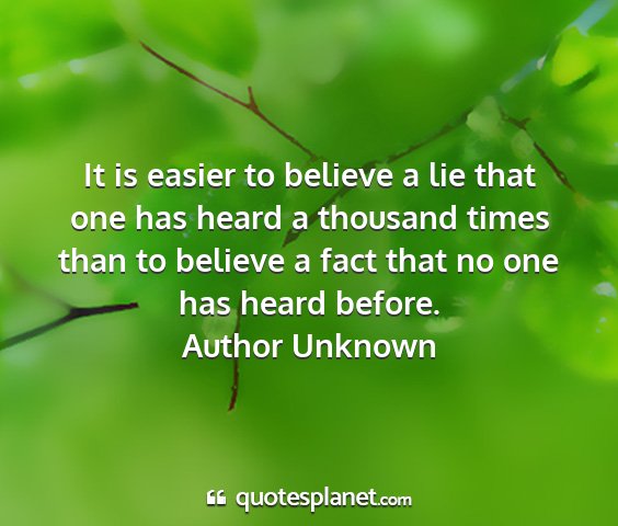 It is easier to believe a lie that one has heard a thousand times than to believe a fact that no one has heard before.Author Unknown