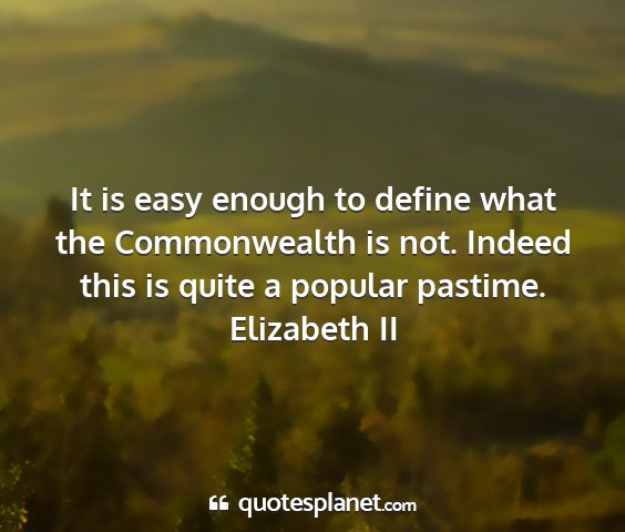 It is easy enough to define what the Commonwealth is not. Indeed this is quite a popular pastime.Elizabeth II