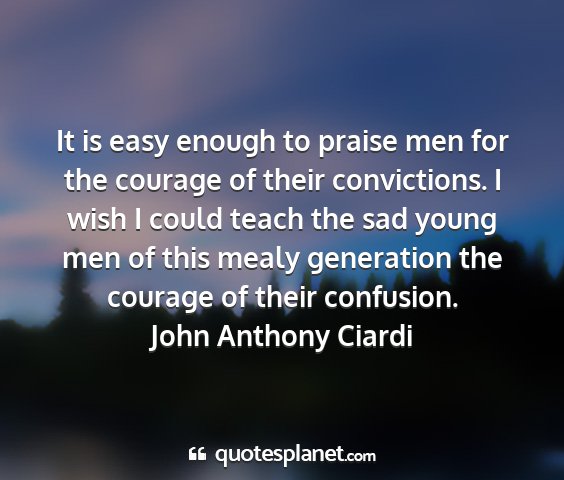 It is easy enough to praise men for the courage of their convictions. I wish I could teach the sad young men of this mealy generation the courage of their confusion.John Anthony Ciardi