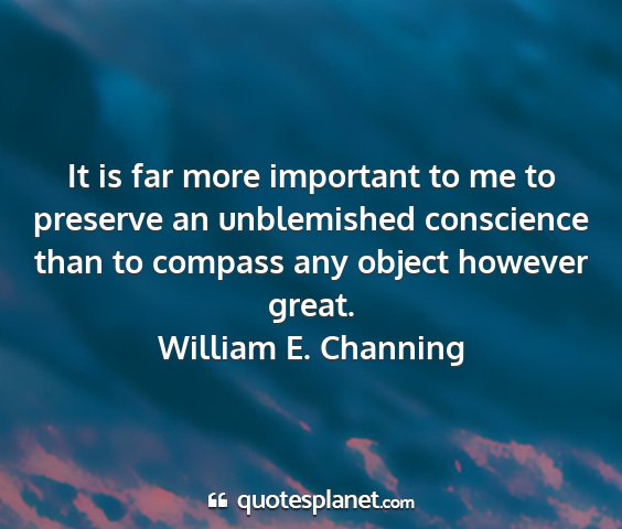 It is far more important to me to preserve an unblemished conscience than to compass any object however great.William E. Channing
