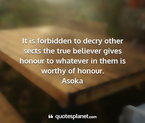 It is forbidden to decry other sects the true believer gives honour to whatever in them is worthy of honour.Asoka