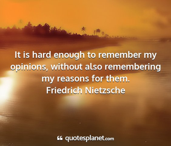 It is hard enough to remember my opinions, without also remembering my reasons for them.Friedrich Nietzsche