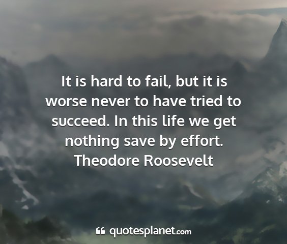 It is hard to fail, but it is worse never to have tried to succeed. In this life we get nothing save by effort.Theodore Roosevelt