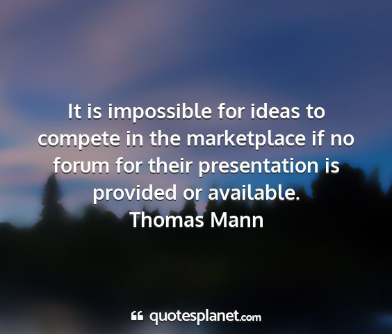 It is impossible for ideas to compete in the marketplace if no forum for their presentation is provided or available.Thomas Mann