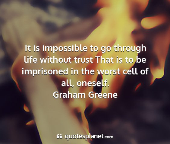 It is impossible to go through life without trust That is to be imprisoned in the worst cell of all, oneself.Graham Greene