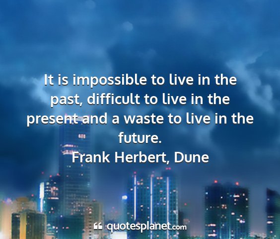 It is impossible to live in the past, difficult to live in the present and a waste to live in the future.Frank Herbert, Dune