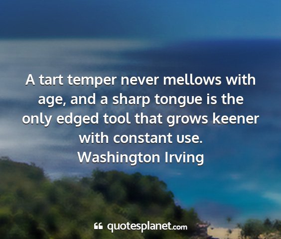 A tart temper never mellows with age, and a sharp tongue is the only edged tool that grows keener with constant use.Washington Irving