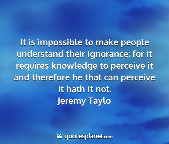 It is impossible to make people understand their ignorance; for it requires knowledge to perceive it and therefore he that can perceive it hath it not.Jeremy Taylo