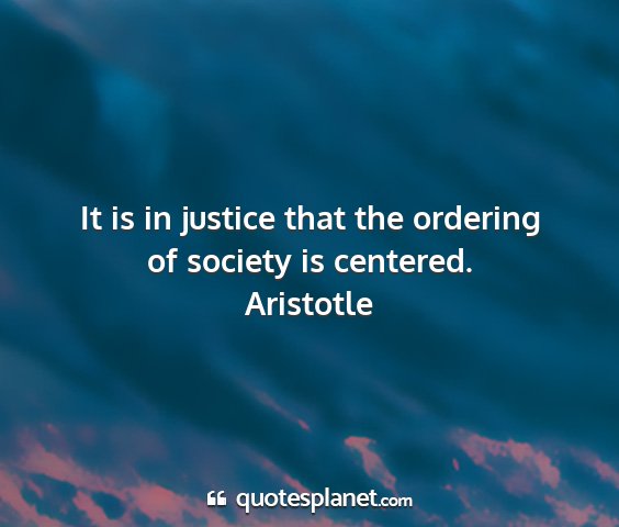 It is in justice that the ordering of...