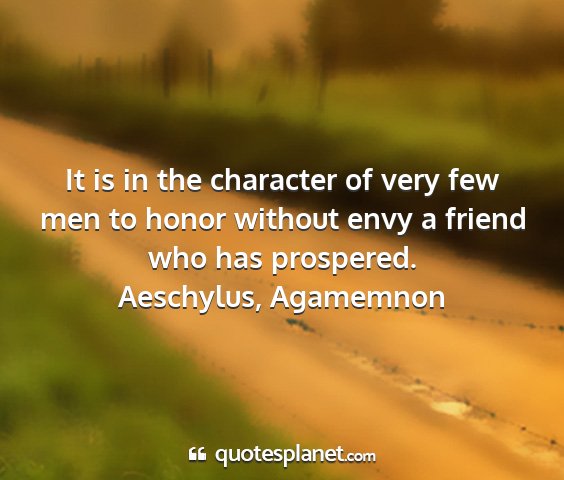 It is in the character of very few men to honor without envy a friend who has prospered.Aeschylus, Agamemnon