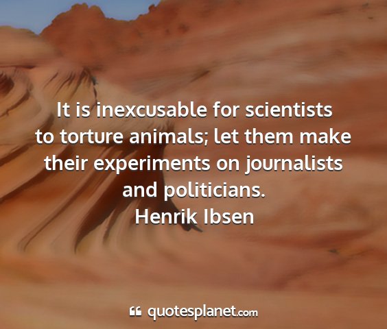 It is inexcusable for scientists to torture animals; let them make their experiments on journalists and politicians.Henrik Ibsen
