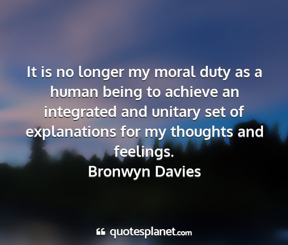 It is no longer my moral duty as a human being to achieve an integrated and unitary set of explanations for my thoughts and feelings.Bronwyn Davies