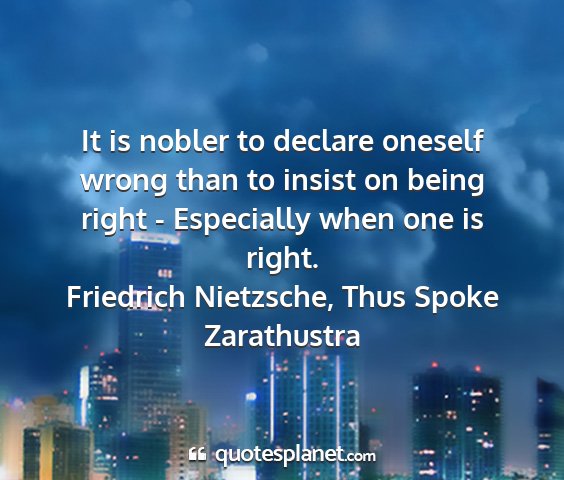 It is nobler to declare oneself wrong than to insist on being right - Especially when one is right.Friedrich Nietzsche, Thus Spoke Zarathustra