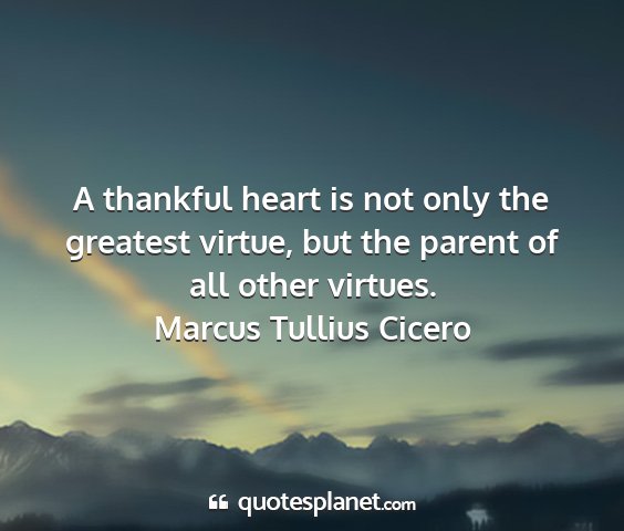 A thankful heart is not only the greatest virtue, but the parent of all other virtues.Marcus Tullius Cicero