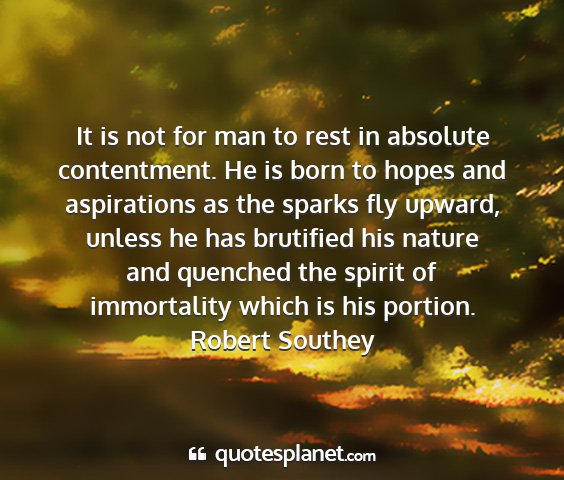 It is not for man to rest in absolute contentment. He is born to hopes and aspirations as the sparks fly upward, unless he has brutified his nature and quenched the spirit of immortality which is his portion.Robert Southey