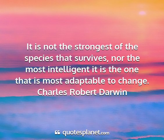 It is not the strongest of the species that survives, nor the most intelligent it is the one that is most adaptable to change.Charles Robert Darwin