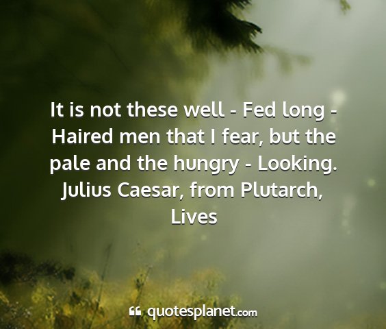 It is not these well - Fed long - Haired men that I fear, but the pale and the hungry - Looking.Julius Caesar, from Plutarch, Lives