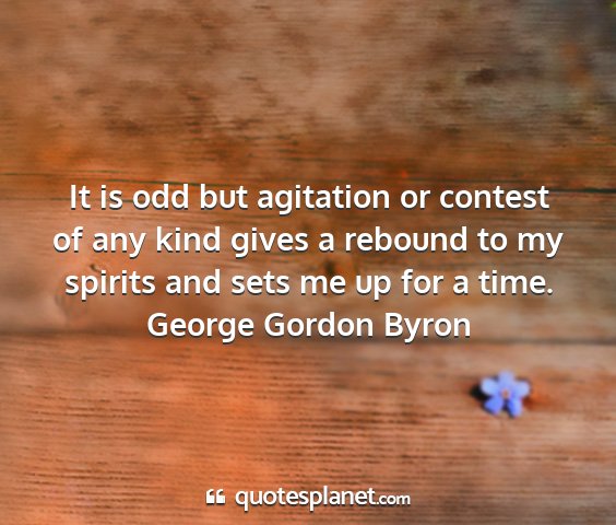 It is odd but agitation or contest of any kind gives a rebound to my spirits and sets me up for a time.George Gordon Byron