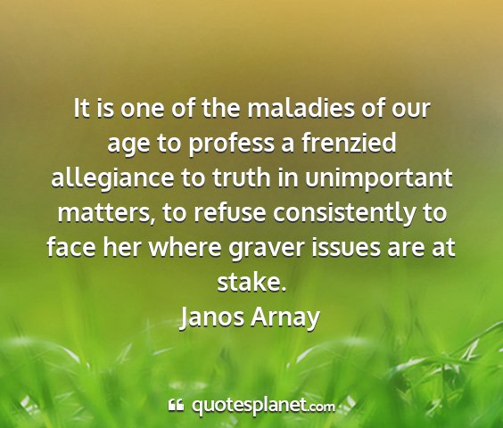 It is one of the maladies of our age to profess a frenzied allegiance to truth in unimportant matters, to refuse consistently to face her where graver issues are at stake.Janos Arnay