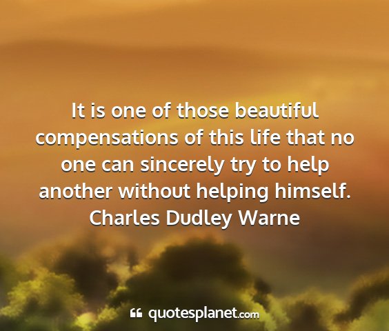 It is one of those beautiful compensations of this life that no one can sincerely try to help another without helping himself.Charles Dudley Warne