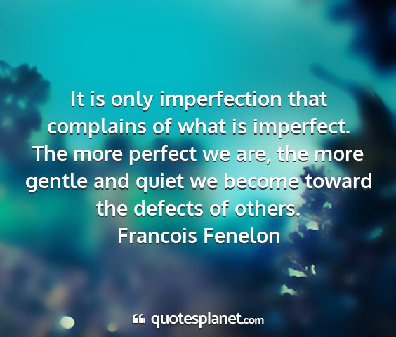 It is only imperfection that complains of what is imperfect. The more perfect we are, the more gentle and quiet we become toward the defects of others.Francois Fenelon
