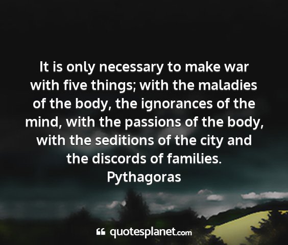 It is only necessary to make war with five things; with the maladies of the body, the ignorances of the mind, with the passions of the body, with the seditions of the city and the discords of families.Pythagoras