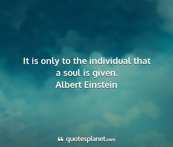 It is only to the individual that a soul is given.
