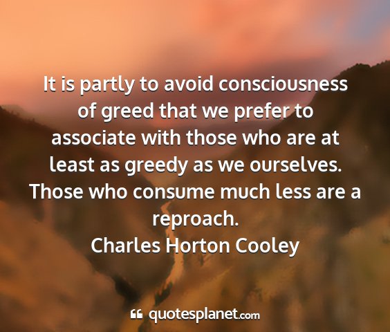 It is partly to avoid consciousness of greed that we prefer to associate with those who are at least as greedy as we ourselves. Those who consume much less are a reproach.Charles Horton Cooley