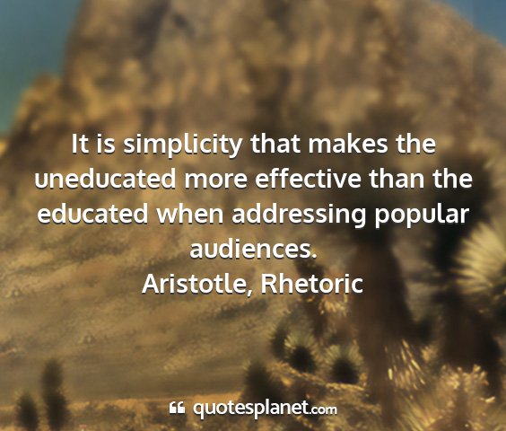 It is simplicity that makes the uneducated more effective than the educated when addressing popular audiences.Aristotle, Rhetoric
