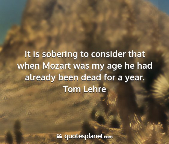 It is sobering to consider that when Mozart was my age he had already been dead for a year.