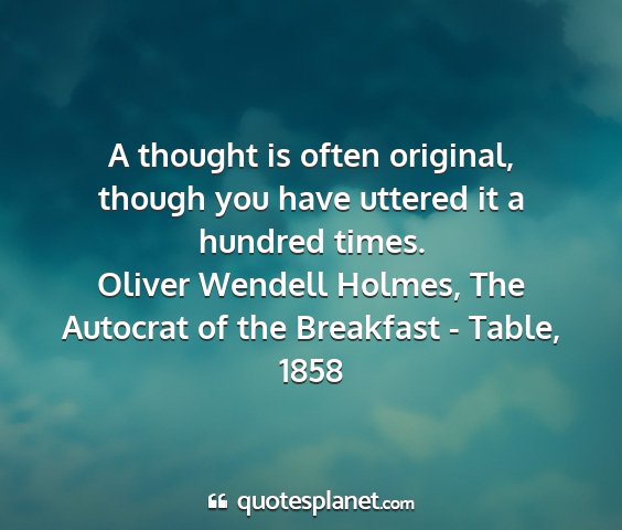 A thought is often original, though you have uttered it a hundred times.Oliver Wendell Holmes, The Autocrat of the Breakfast - Table, 1858