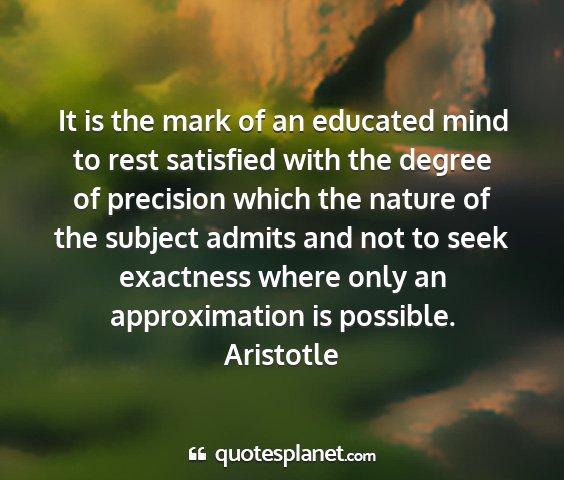 It is the mark of an educated mind to rest satisfied with the degree of precision which the nature of the subject admits and not to seek exactness where only an approximation is possible.Aristotle