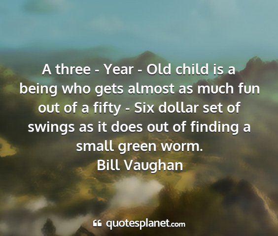 A three - Year - Old child is a being who gets almost as much fun out of a fifty - Six dollar set of swings as it does out of finding a small green worm.Bill Vaughan