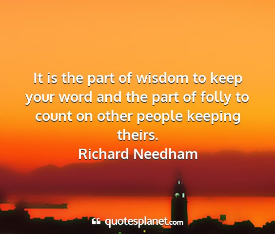 It is the part of wisdom to keep your word and the part of folly to count on other people keeping theirs.Richard Needham