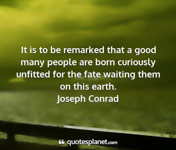 It is to be remarked that a good many people are born curiously unfitted for the fate waiting them on this earth.Joseph Conrad