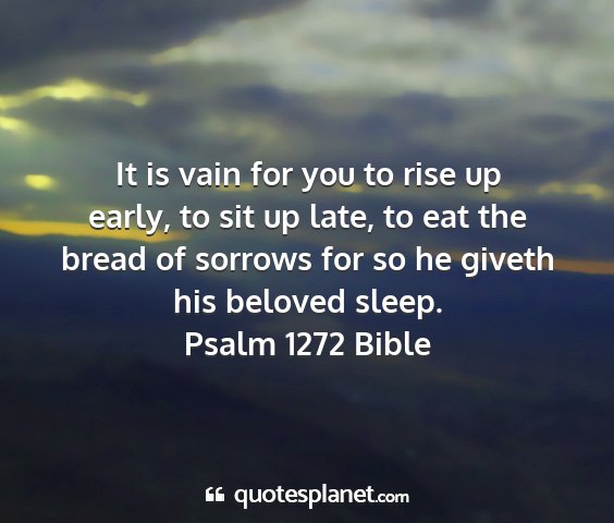 It is vain for you to rise up early, to sit up late, to eat the bread of sorrows for so he giveth his beloved sleep.Psalm 1272 Bible