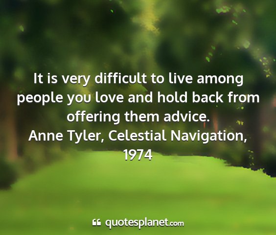 It is very difficult to live among people you love and hold back from offering them advice.Anne Tyler, Celestial Navigation, 1974