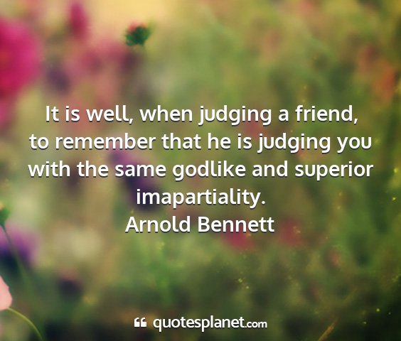It is well, when judging a friend, to remember that he is judging you with the same godlike and superior imapartiality.Arnold Bennett