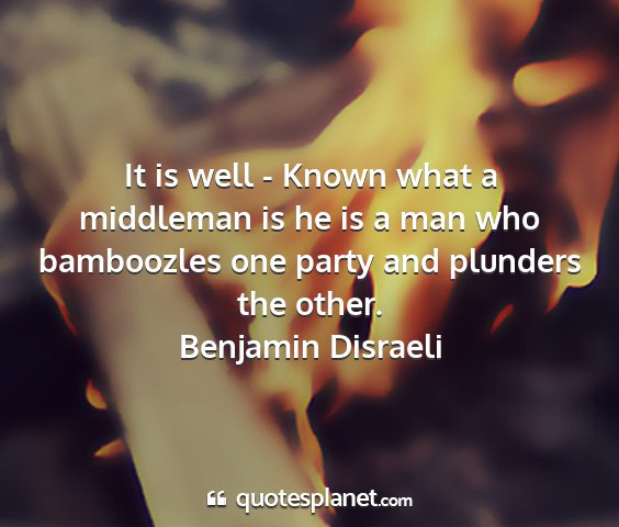 It is well - Known what a middleman is he is a man who bamboozles one party and plunders the other.Benjamin Disraeli
