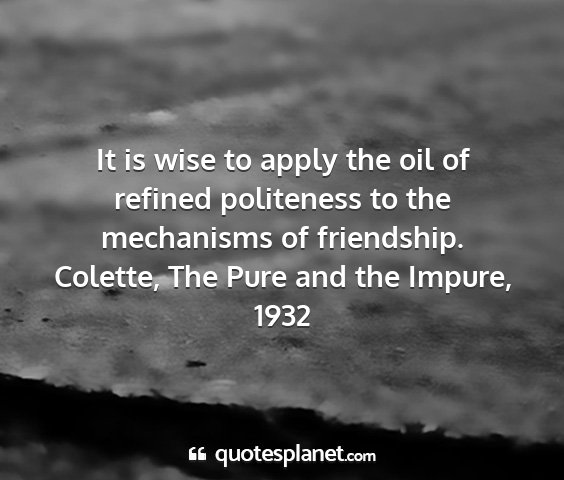 It is wise to apply the oil of refined politeness to the mechanisms of friendship.Colette, The Pure and the Impure, 1932
