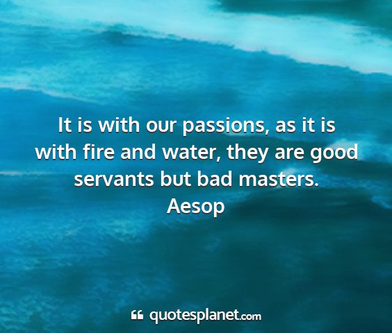 It is with our passions, as it is with fire and water, they are good servants but bad masters.
