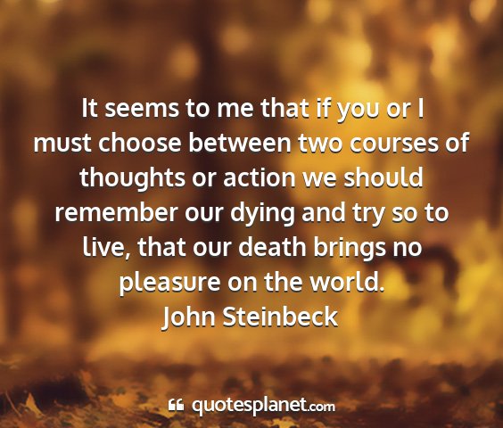 It seems to me that if you or I must choose between two courses of thoughts or action we should remember our dying and try so to live, that our death brings no pleasure on the world.John Steinbeck