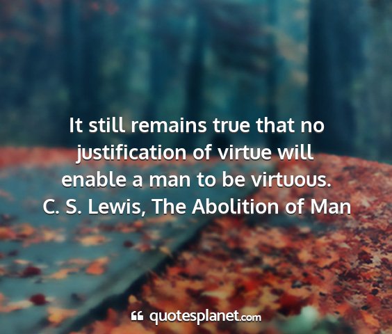 It still remains true that no justification of virtue will enable a man to be virtuous.C. S. Lewis, The Abolition of Man
