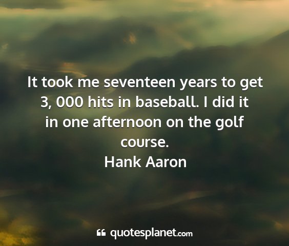 It took me seventeen years to get 3, 000 hits in baseball. I did it in one afternoon on the golf course.Hank Aaron