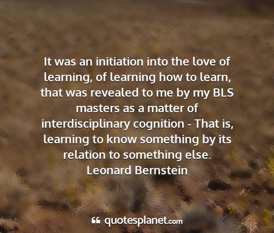 It was an initiation into the love of learning, of learning how to learn, that was revealed to me by my BLS masters as a matter of interdisciplinary cognition - That is, learning to know something by its relation to something else.Leonard Bernstein