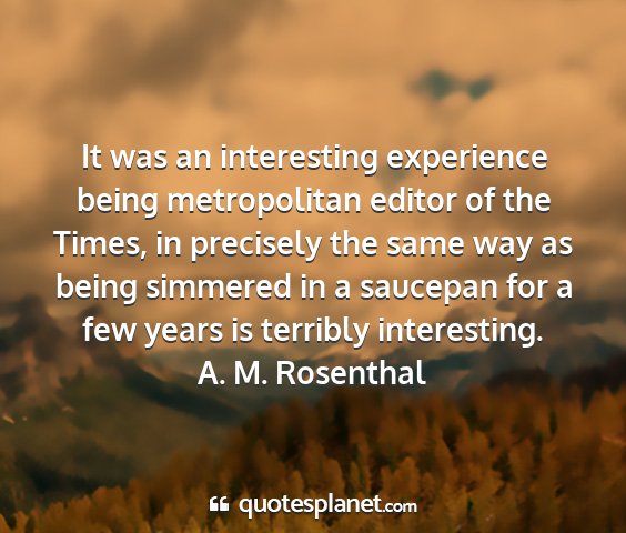 It was an interesting experience being metropolitan editor of the Times, in precisely the same way as being simmered in a saucepan for a few years is terribly interesting.A. M. Rosenthal